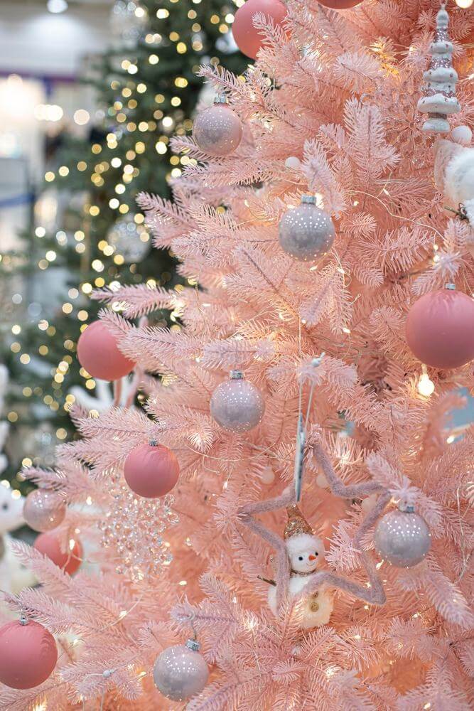 Green trees are classic, but white or colored options add personality. Gold and silver baubles look stunning on a tree with white lights.