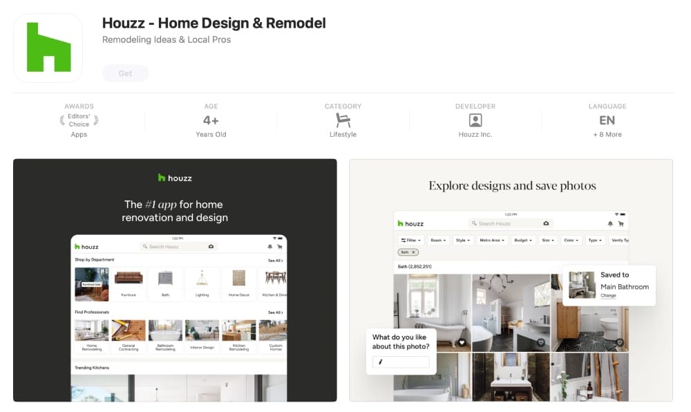 Houzz ist weniger Planungs-Tool als vielmehr Inspirationsquelle und Shopping-Plattform in einem. Die App bietet Millionen von Einrichtungsfotos, aus denen du Ideen sammeln und direkt Produkte kaufen kannst. Die Moodboard-Funktion hilft beim Sammeln und Organisieren deiner Favoriten.