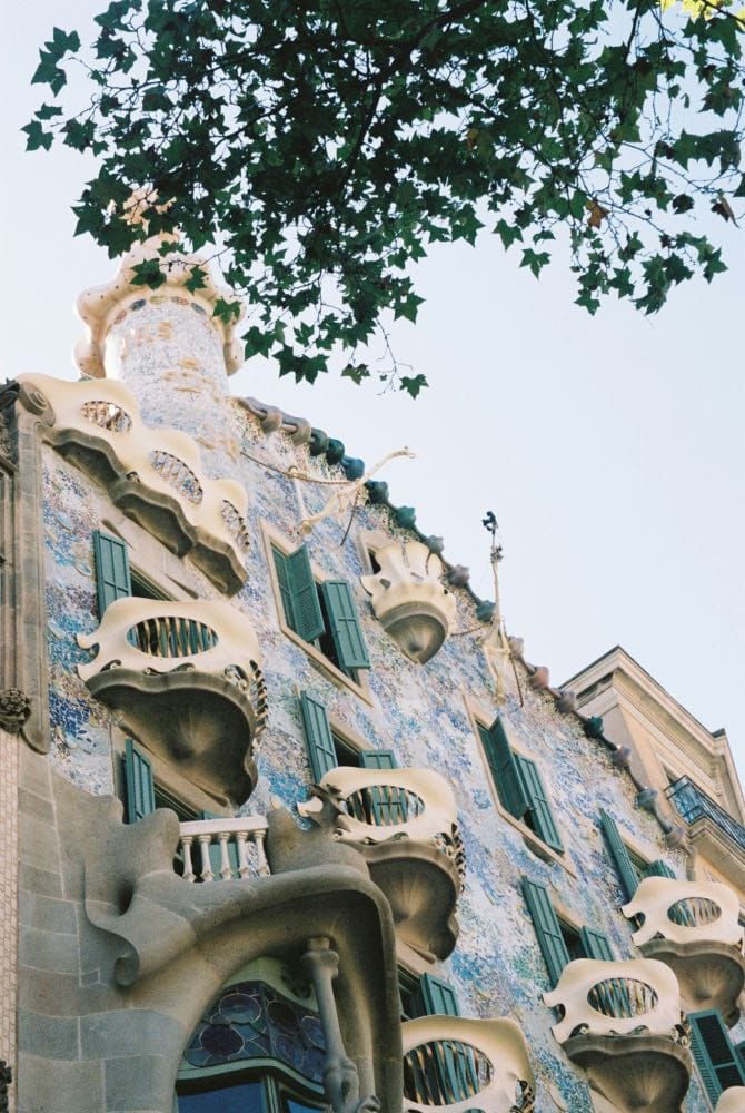 Antoni Gaudí entwickelte in Barcelona eine ganz eigene Interpretation des Jugendstils, den katalanischen Modernisme. Die Casa Batlló (1904-1906) gilt als eines seiner Hauptwerke: Die wellenförmige Fassade mit bunten Keramikmosaiken, organisch geschwungene Fensteröffnungen und skelettartige Balkone erinnern an eine Unterwasserwelt. Gaudís radikale Formensprache ging weit über den europäischen Jugendstil hinaus und schuf eine völlig neue, phantastische Architektur.