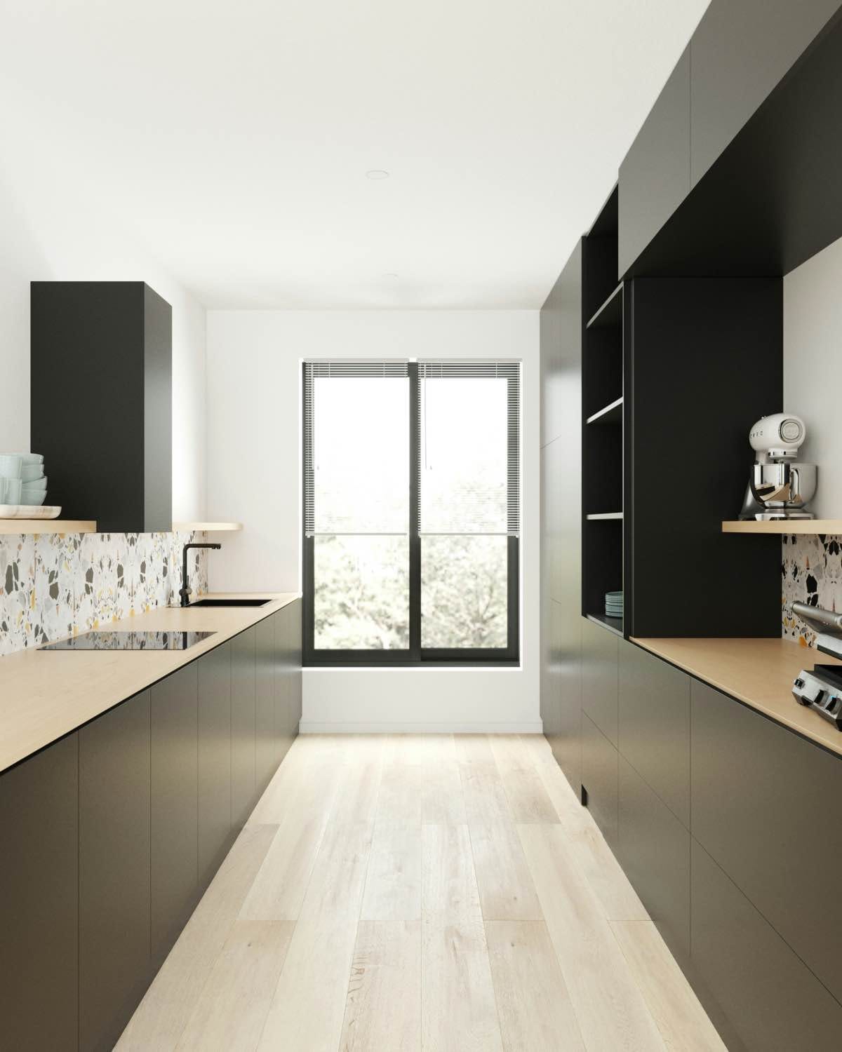 Aquellas cocinas en las que cada elemento queda integrado de forma uniforme, permiten explorar estéticas mejor acabadas que en otros proyectos. Por esta razón, en muchas cocinas integrales se apuesta por pulcros diseños minimalistas, donde todas las instalaciones y electrodomésticos se ocultan tras puertas y alacenas. Así, los colores de cocinas integrales más comunes son blancos, grises e incluso negros, colores neutros que encajan en la estética minimalista y buscan dar un toque atemporal al diseño.