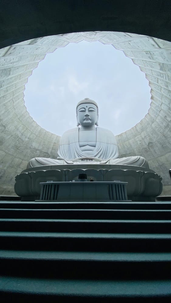 Au cœur du cimetière Makomanai Takino à Sapporo, la Colline du Bouddha offre une expérience spirituelle unique mêlant architecture, lumière et paysage. Cette structure en béton enveloppe une imposante statue de 13,5 mètres du Bouddha, n’en laissant visible que la tête, qui semble émerger d’un océan végétal.