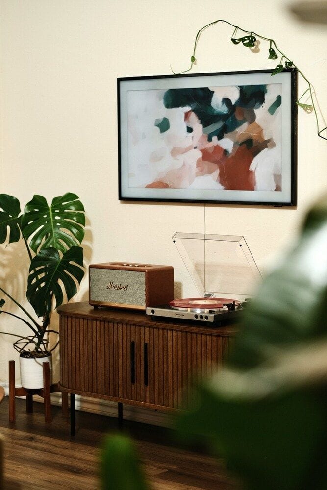 Placez au-dessus du buffet un miroir élégant, un tableau ou une œuvre graphique. Cela attire le regard et structure visuellement l’espace. Une composition murale avec plusieurs cadres peut aussi fonctionner, à condition de conserver une certaine harmonie dans les couleurs et les proportions.