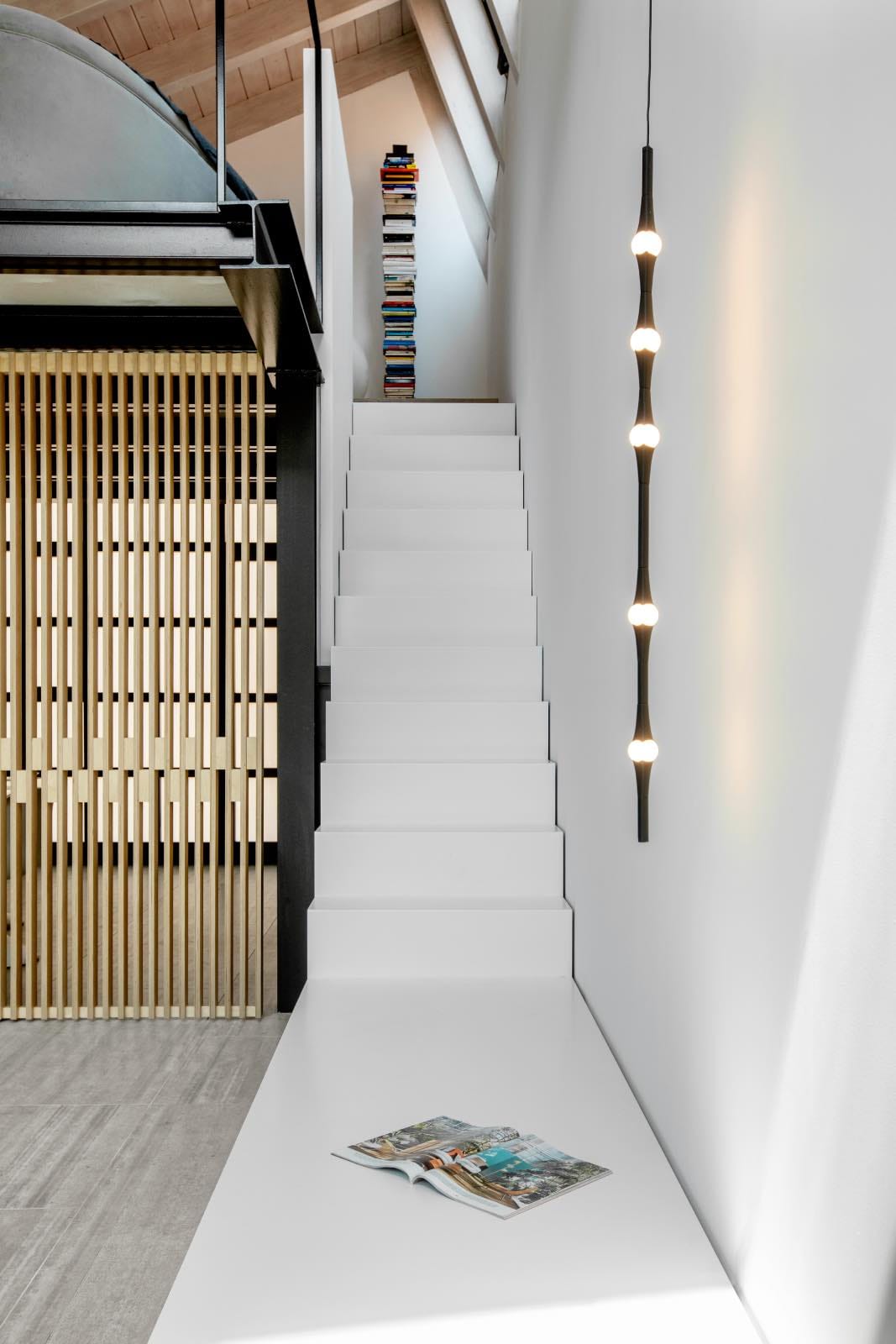 Despite the use of neutral tones and finishes, the project's style is striking. The choice of different stairs for each mezzanine or the indoor/outdoor feel on the first floor adds great personality to the design. Large windows, spectacular wooden ceilings, and elegant lamps are some of the most special details.