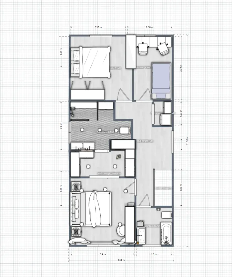No Planner 5D, você pode importar uma planta baixa ou começar a projetar do zero. Nosso software permite que você crie facilmente um esboço com as dimensões exatas da casa ou cômodo, garantindo que o resultado fique de acordo com as proporções reais.