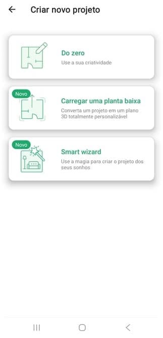 Para criar um novo projeto, é possível começar do zero, escolhendo o formato do cômodo, adicionando paredes, portas, janelas e decorando com o vasto acervo de itens disponível. Também é possível carregar uma planta baixa, que é convertida automaticamente em um projeto 3D personalizável.