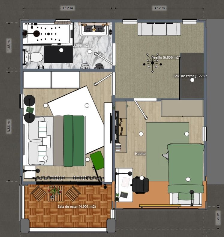 Confira 13 modelos de plantas baixas de casas com dois quartos criados com o Planner 5D. Explore estilos e layouts para se inspirar no seu próximo projeto.