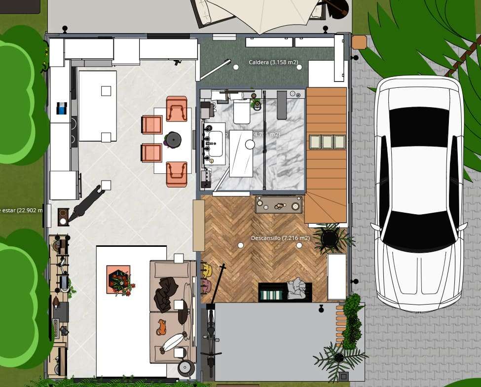 - Defina a área total da casa, incluindo os quartos, banheiro, cozinha, sala de estar e demais espaços que deseja incluir.