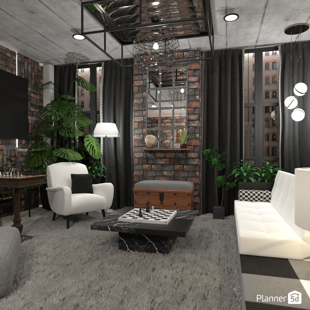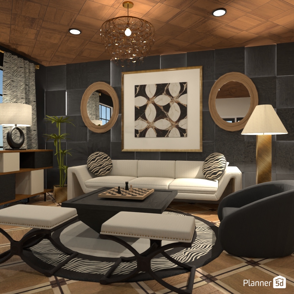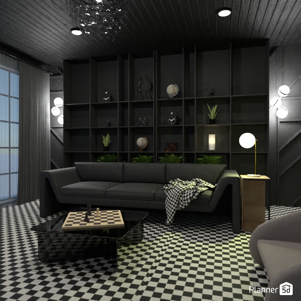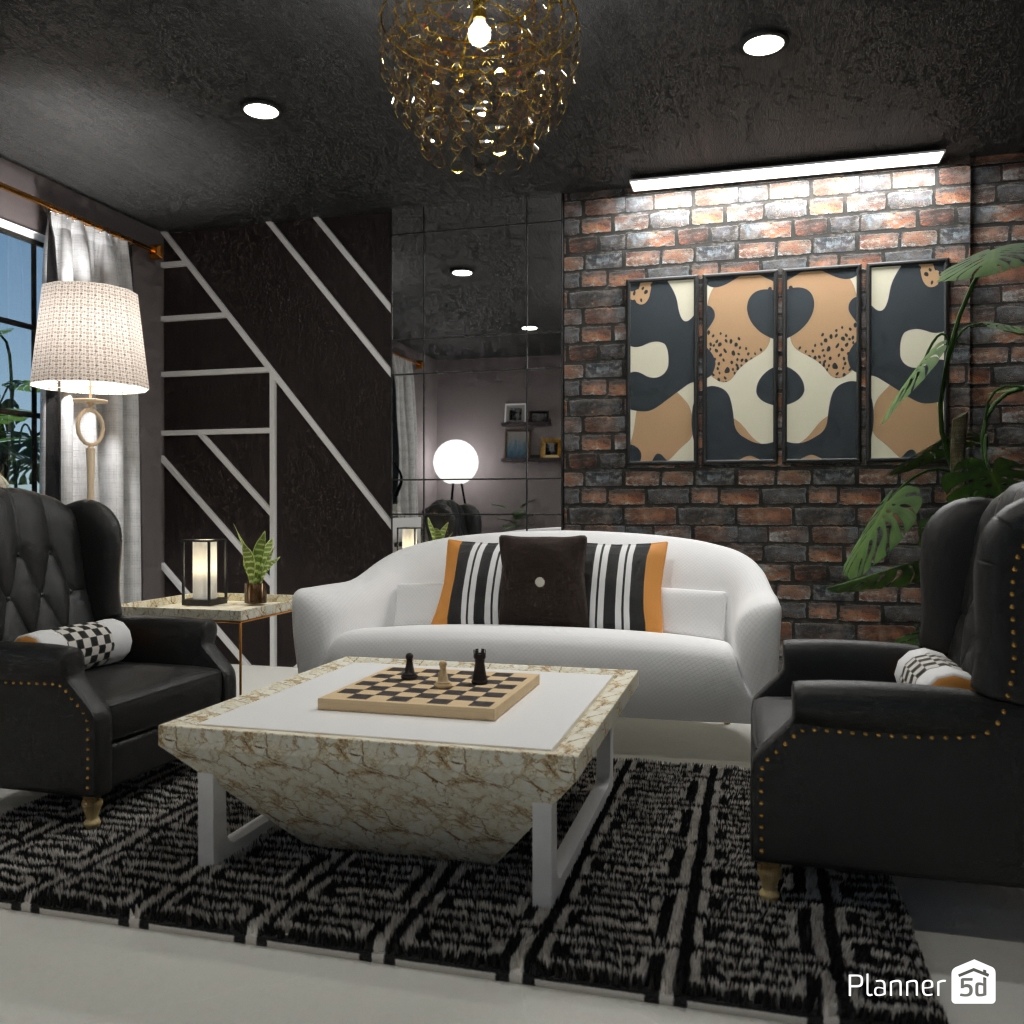 Design a sophisticated chess-themed interior using black-and-white contrasts and elegant details.