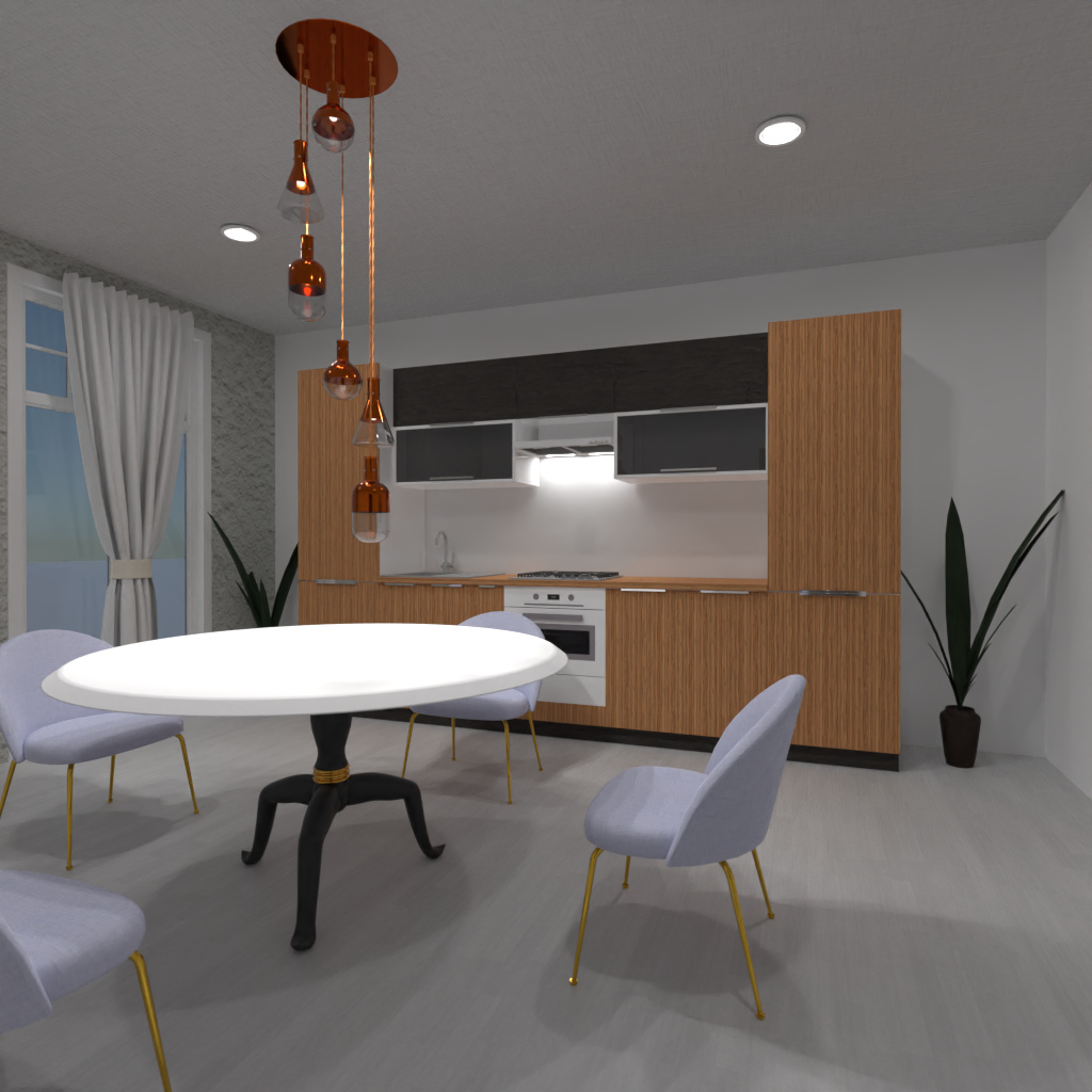 Design a kitchen with gold elements.