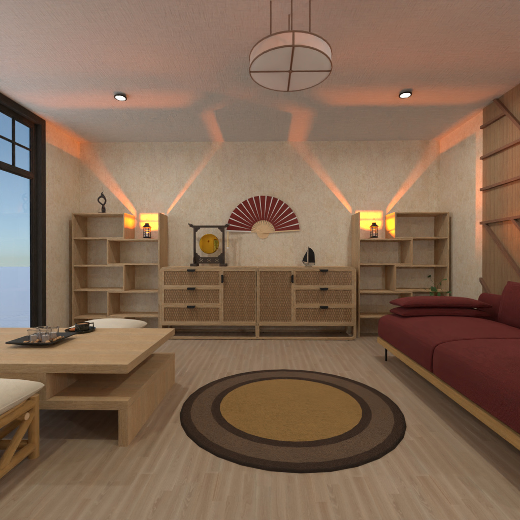 Design a Japanese-style living room interior.