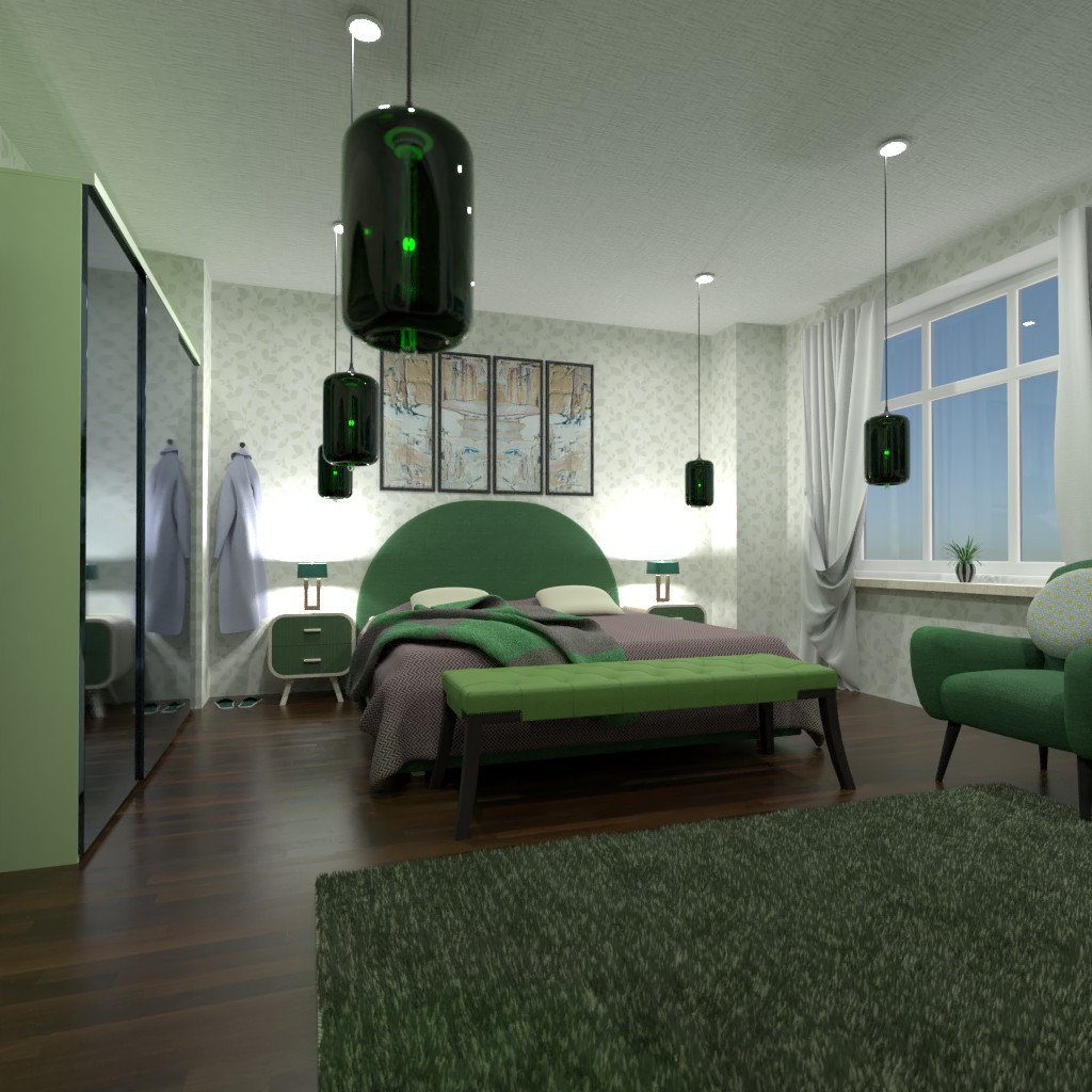 Pick two contrasting colors, and use them to design the interior of a bedroom.