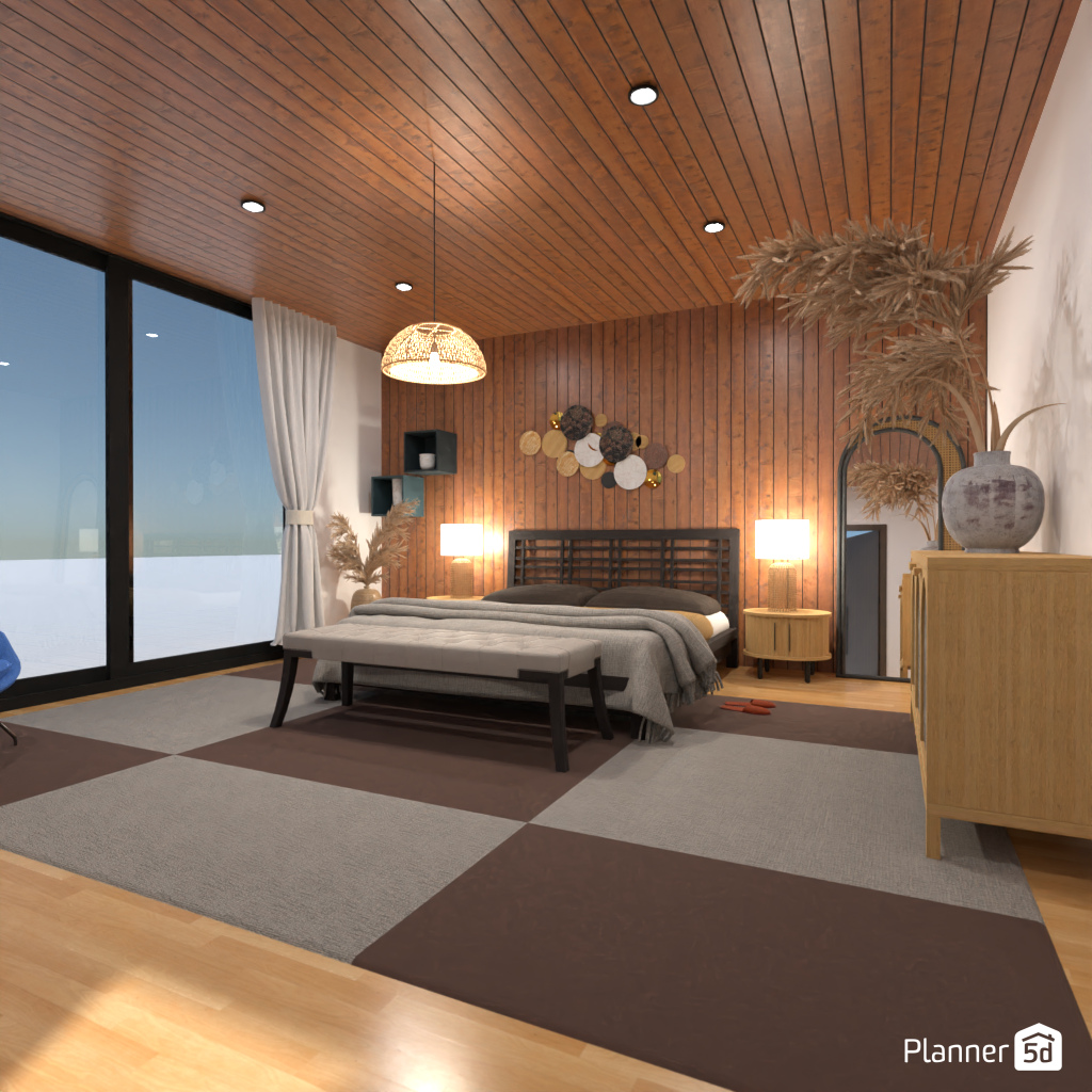 Design a luxurious and cozy hotel room.