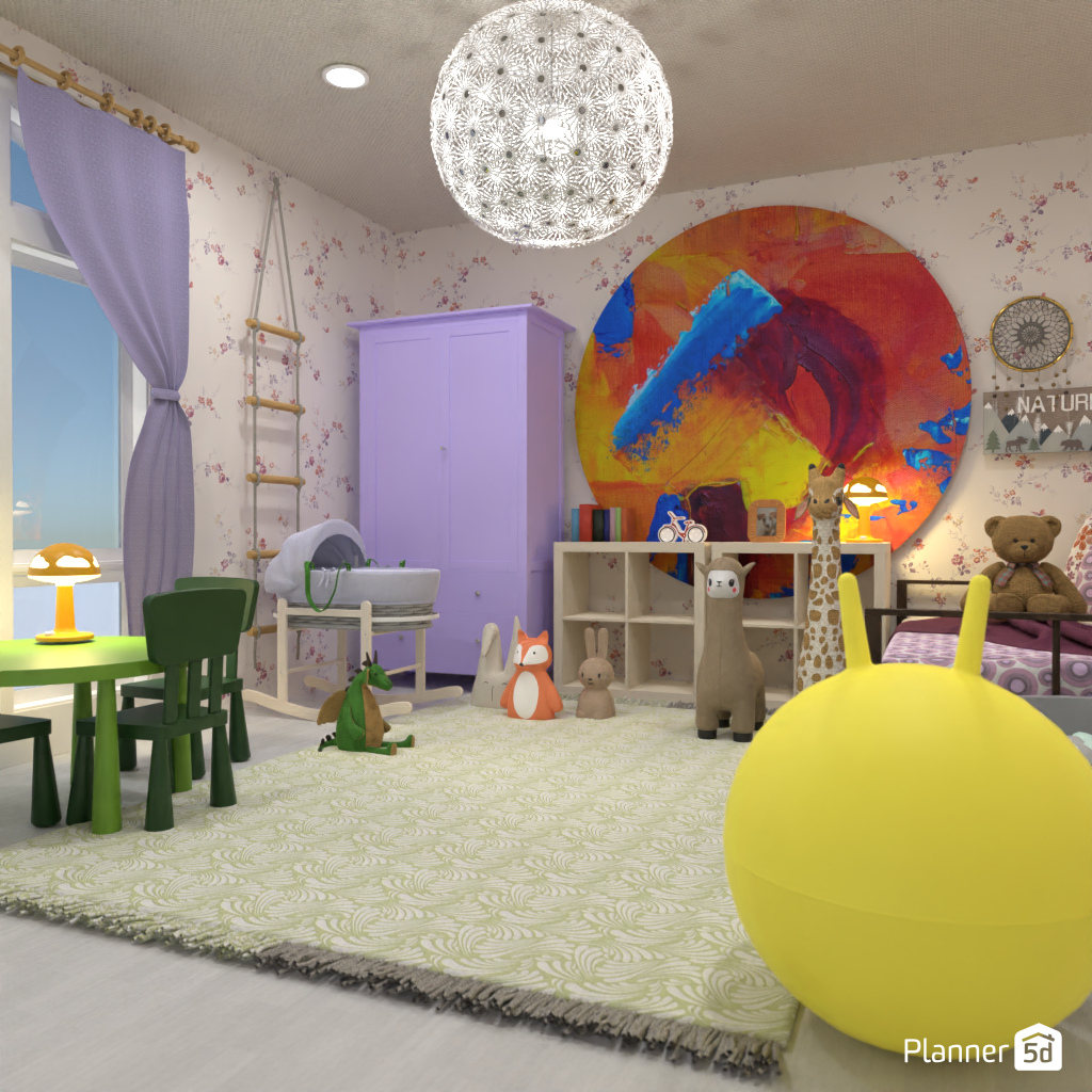 Create a cute and colorful kids' bedroom.