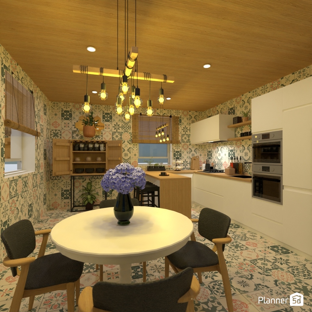 Create a functional and stylish kitchen for a cooking enthusiast.
