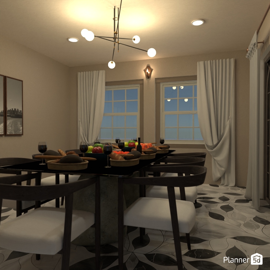 Create a warm dining room for a Thanksgiving feast.