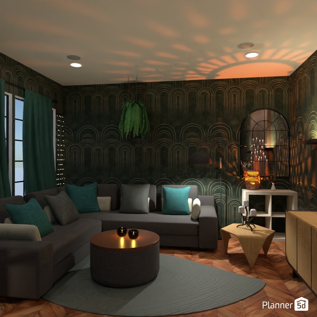 Create a cozy living room filled with candles.