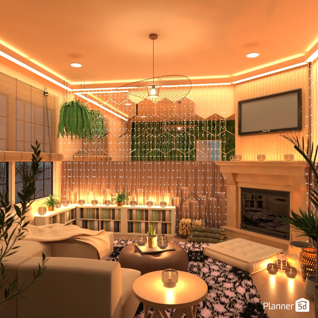 Create a cozy living room filled with candles.