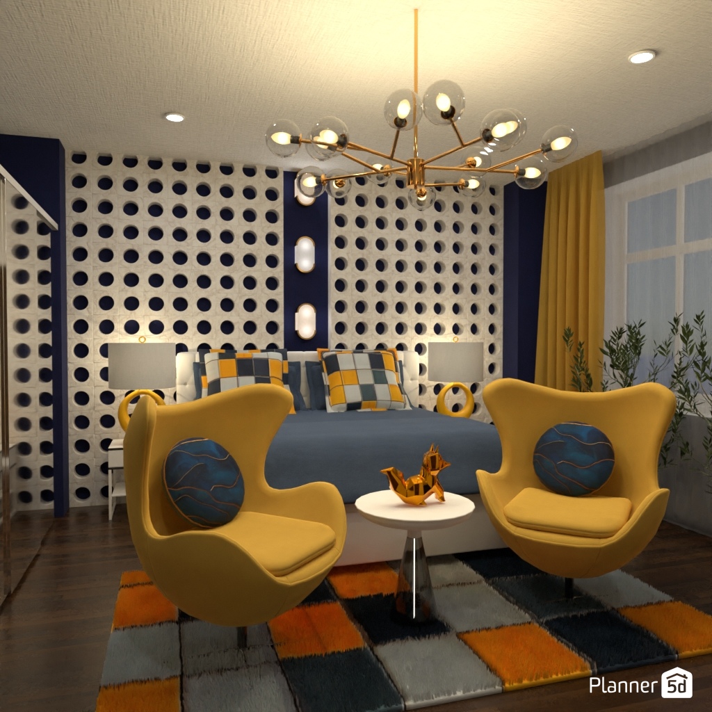 Pick two contrasting colors and use them to design the interior of a bedroom.