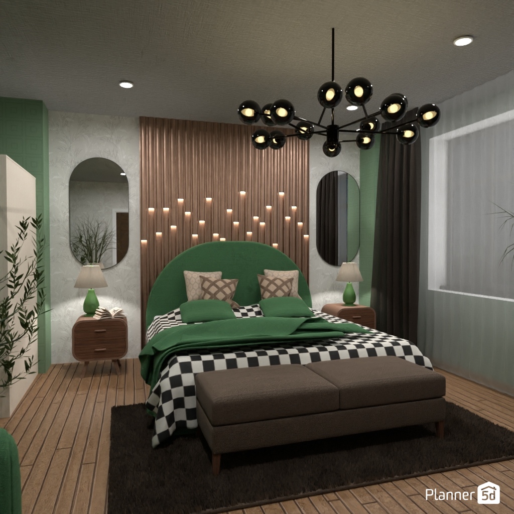 Pick two contrasting colors and use them to design the interior of a bedroom.