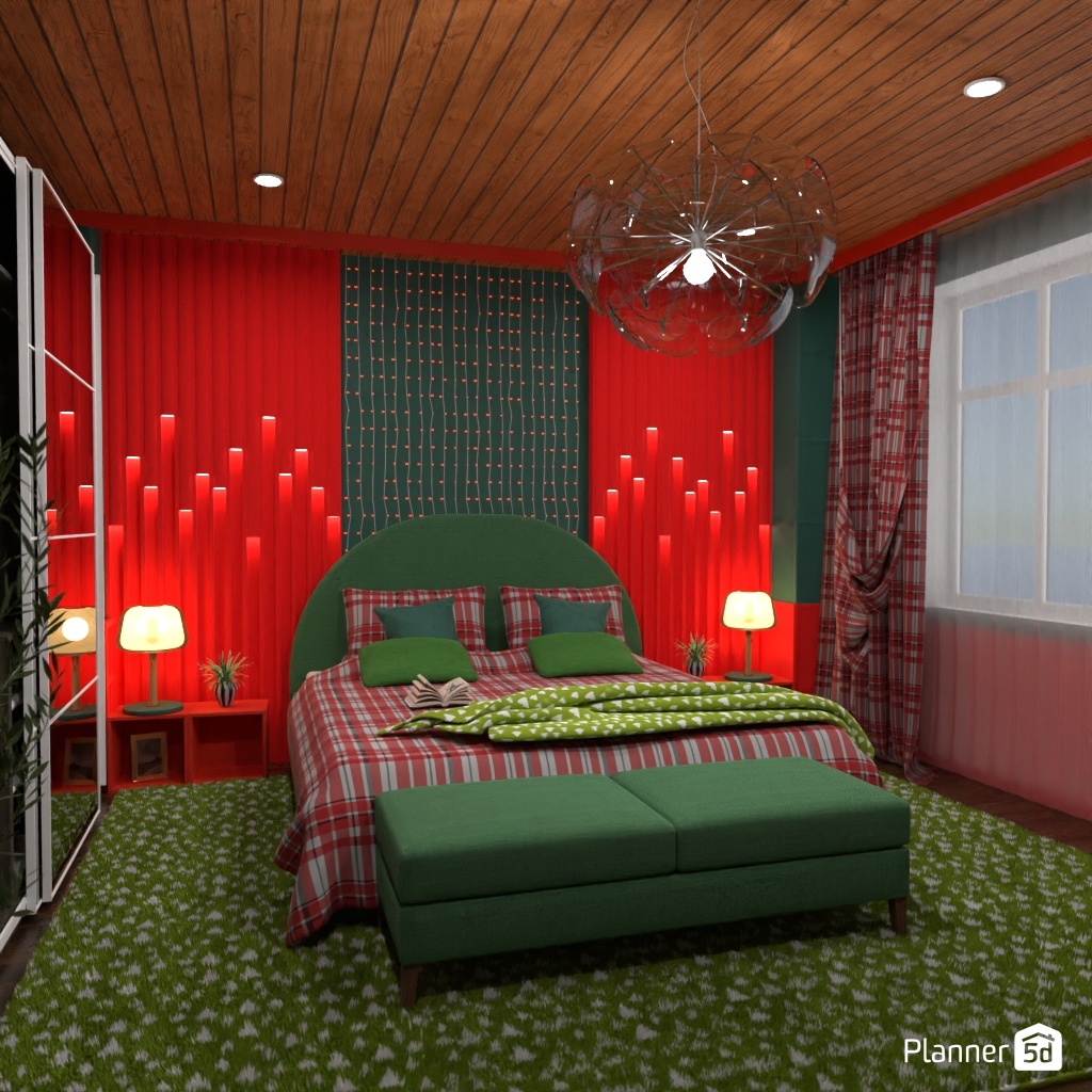 Pick two contrasting colors and use them to design the interior of a bedroom.