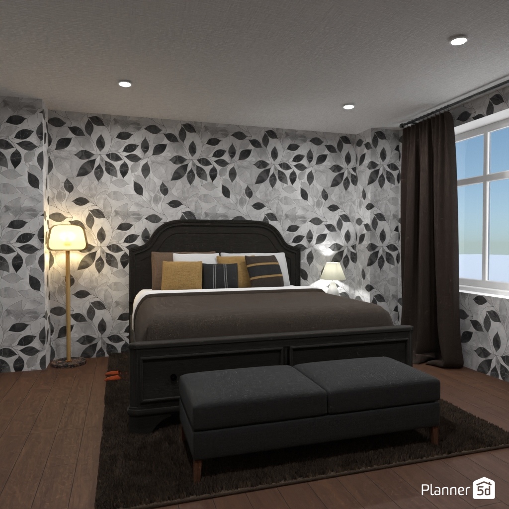 Pick two contrasting colors and use them to design the interior of a bedroom.