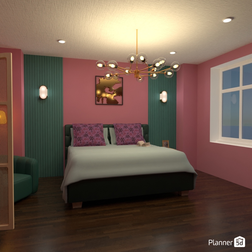Pick two contrasting colors and use them to design the interior of a bedroom.