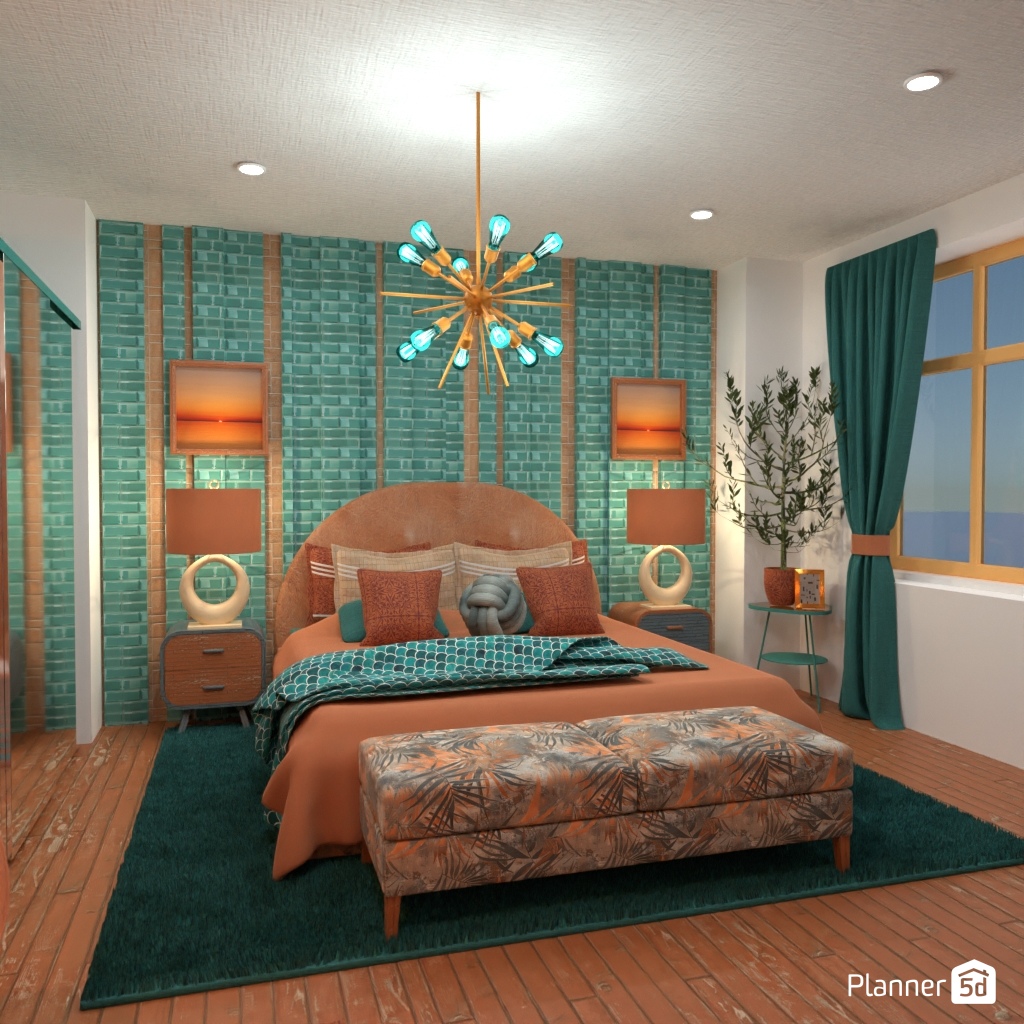 Pick two contrasting colors and use them to design the interior of a bedroom.