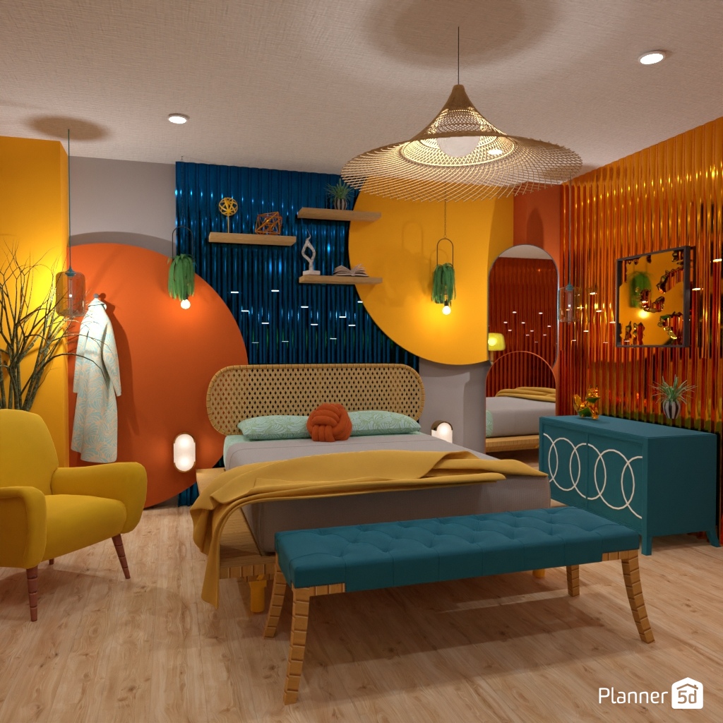 Pick two contrasting colors and use them to design the interior of a bedroom.