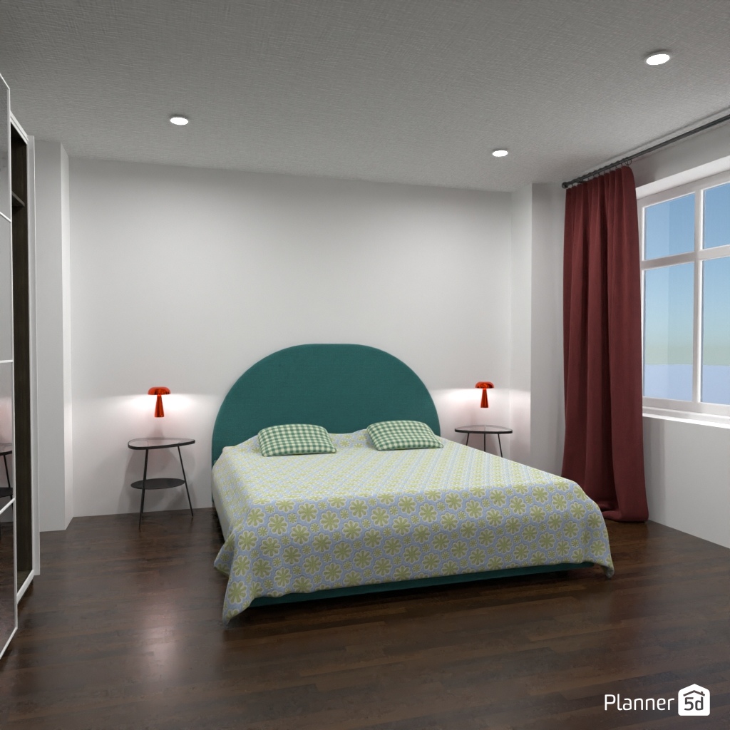 Pick two contrasting colors and use them to design the interior of a bedroom.