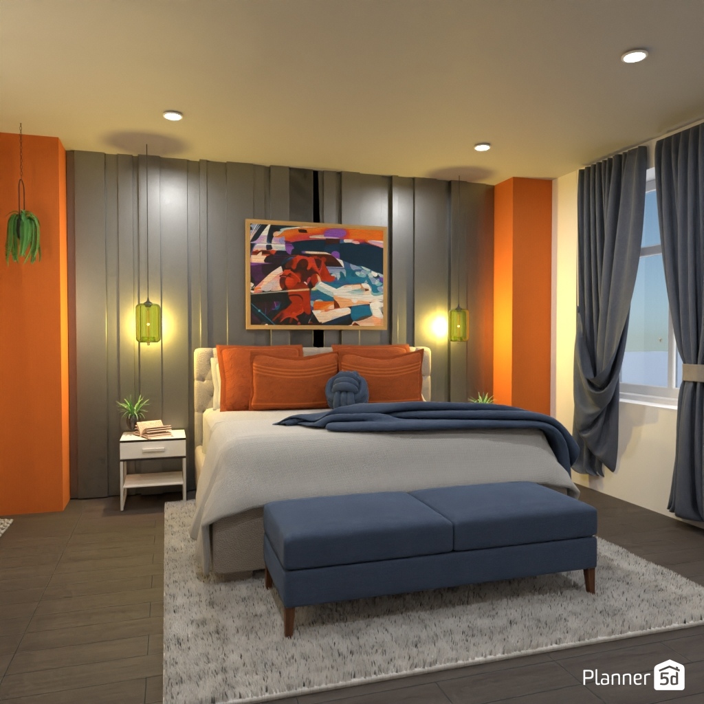 Pick two contrasting colors and use them to design the interior of a bedroom.
