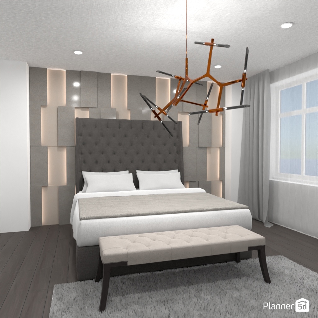 Pick two contrasting colors and use them to design the interior of a bedroom.