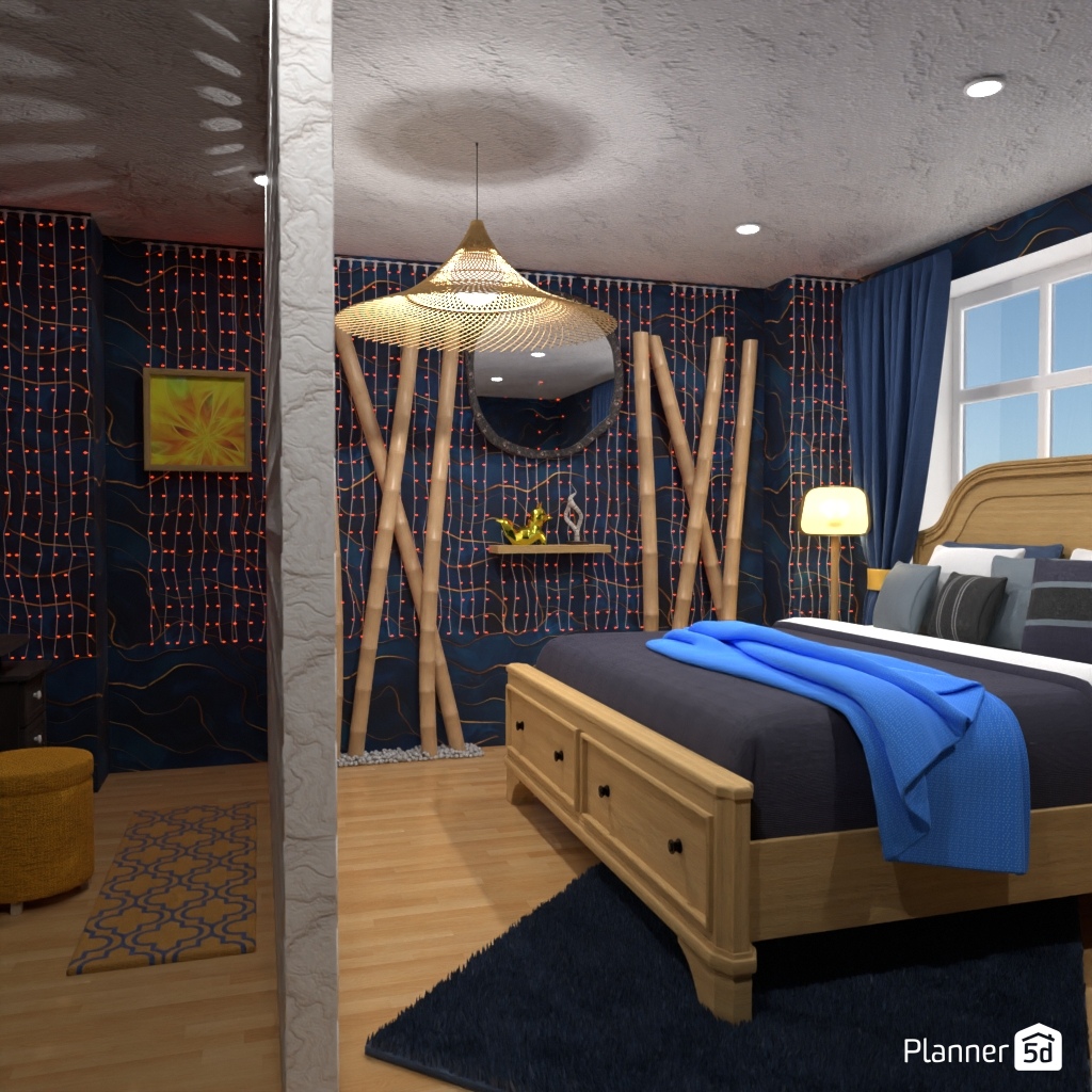 Pick two contrasting colors and use them to design the interior of a bedroom.