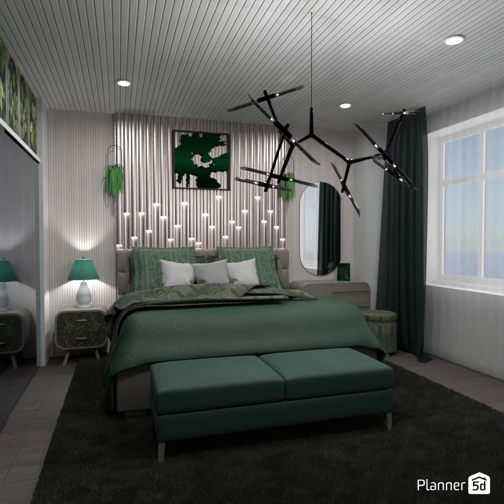 Pick two contrasting colors and use them to design the interior of a bedroom.