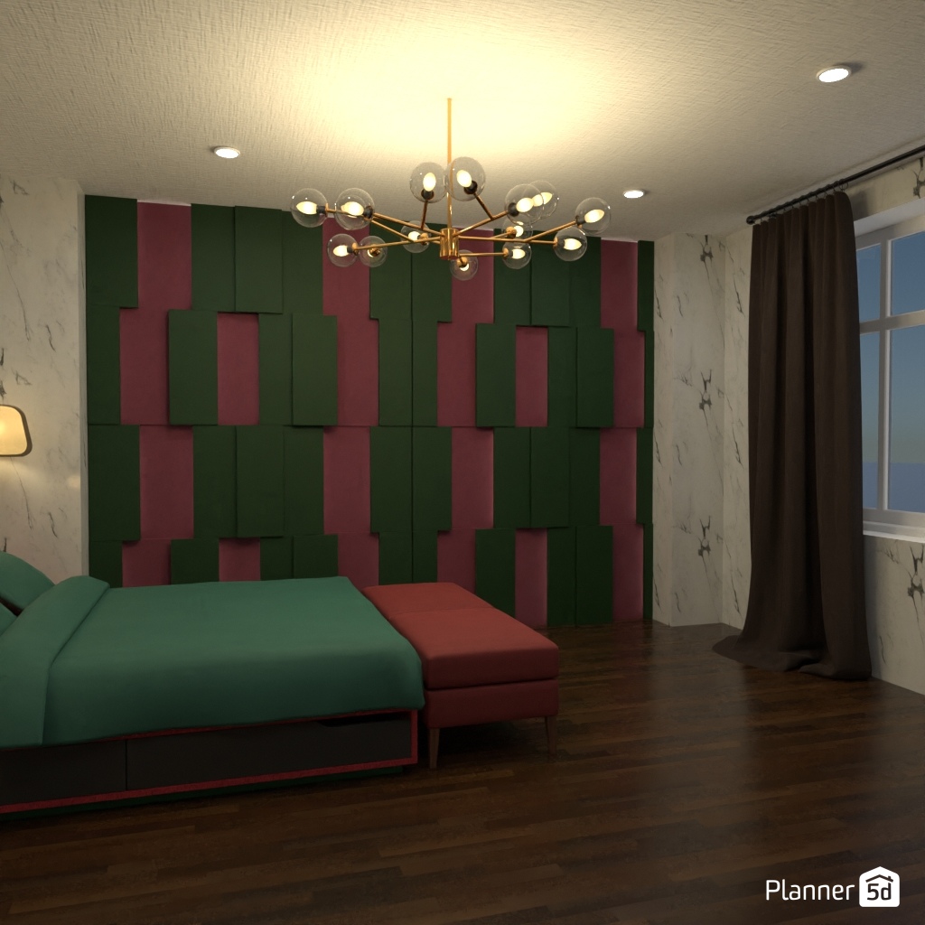 Pick two contrasting colors and use them to design the interior of a bedroom.