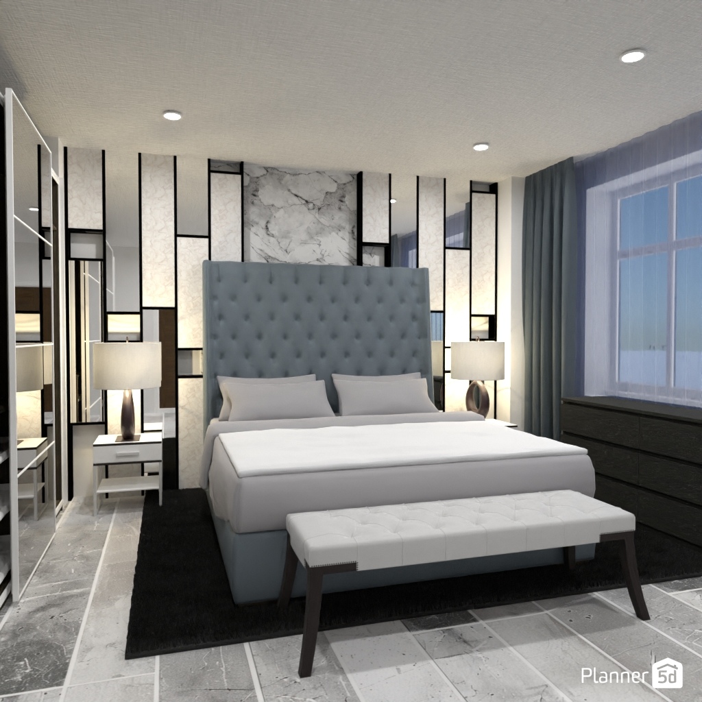 Pick two contrasting colors and use them to design the interior of a bedroom.