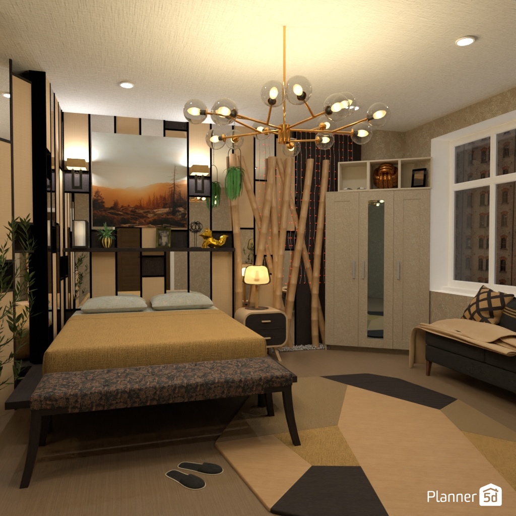 Pick two contrasting colors and use them to design the interior of a bedroom.