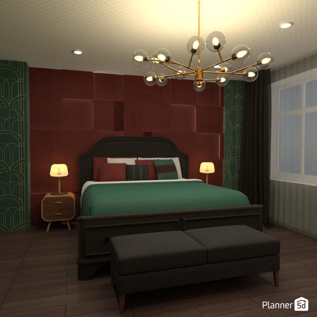 Pick two contrasting colors and use them to design the interior of a bedroom.