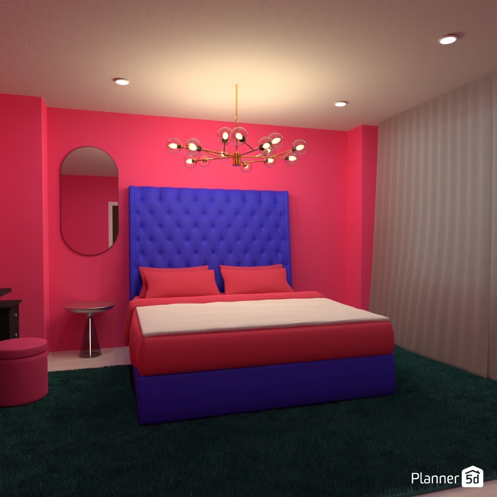 Pick two contrasting colors and use them to design the interior of a bedroom.