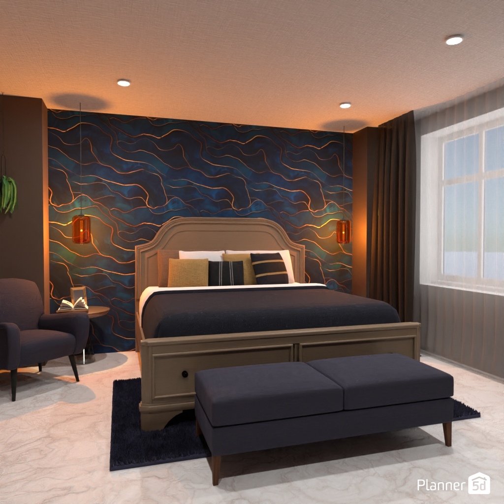 Pick two contrasting colors and use them to design the interior of a bedroom.
