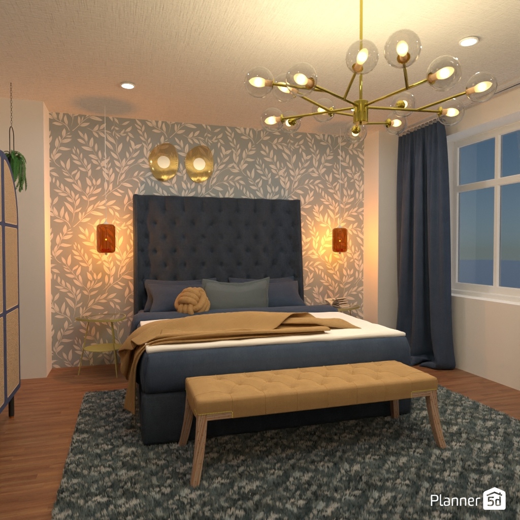 Pick two contrasting colors and use them to design the interior of a bedroom.