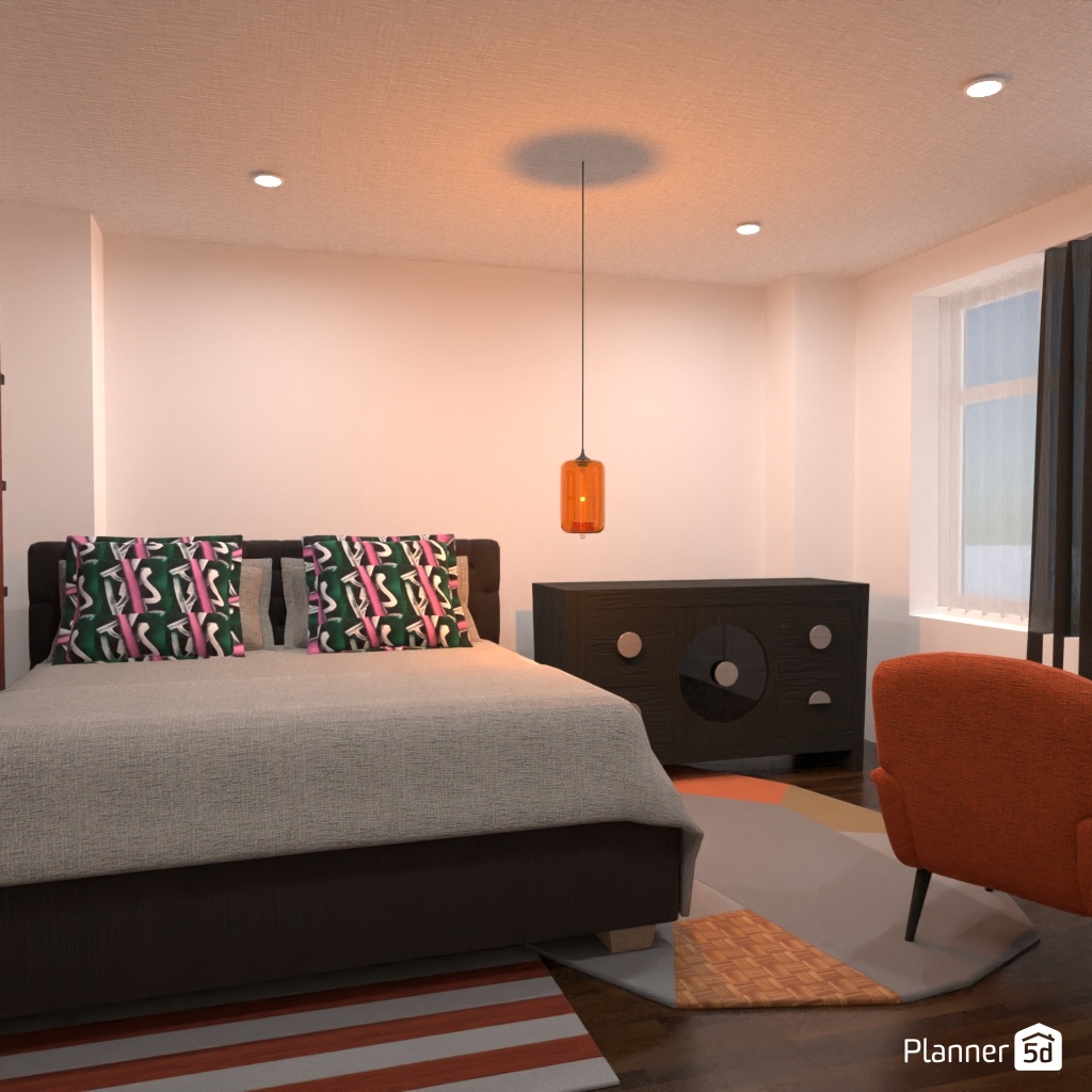 Pick two contrasting colors and use them to design the interior of a bedroom.
