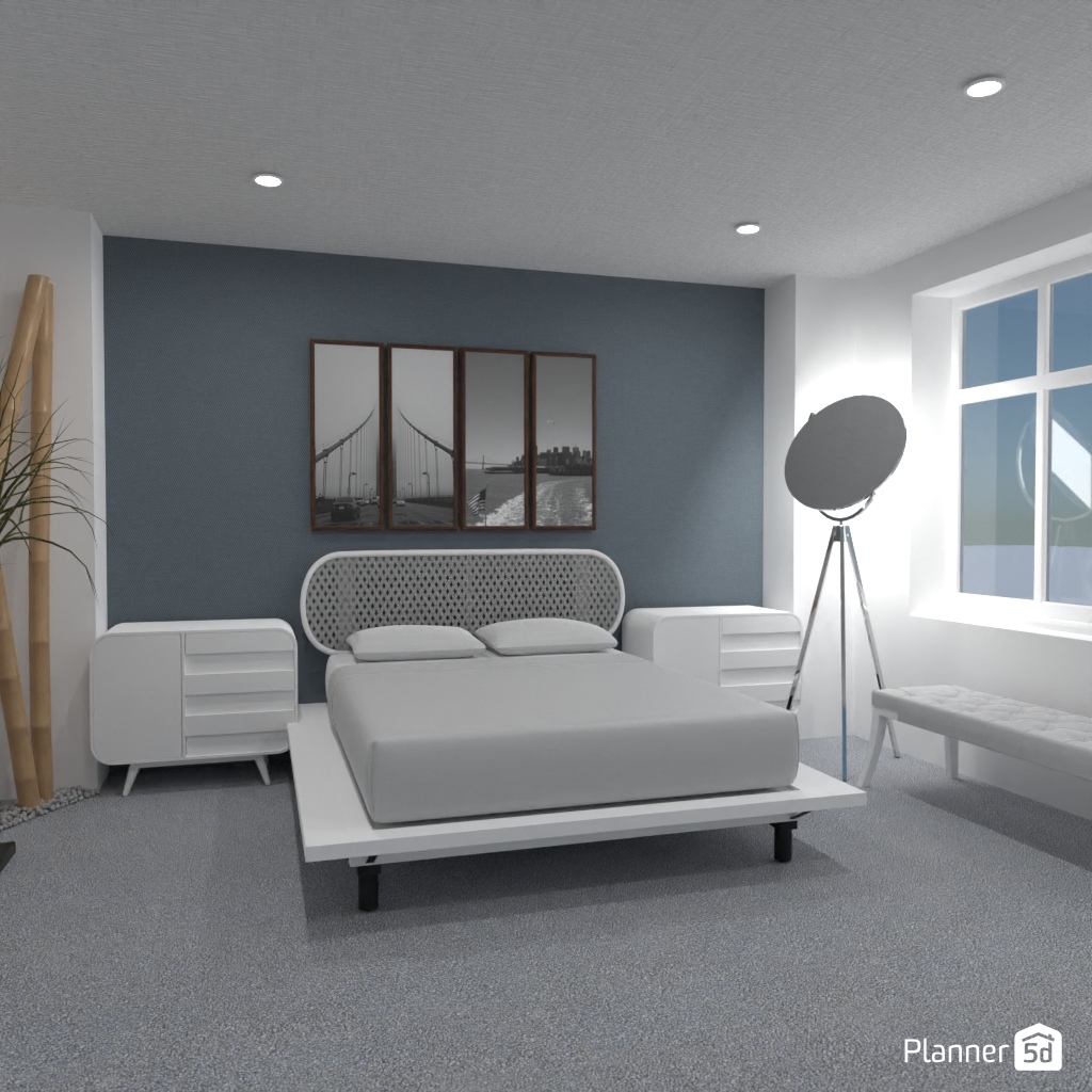 Pick two contrasting colors and use them to design the interior of a bedroom.
