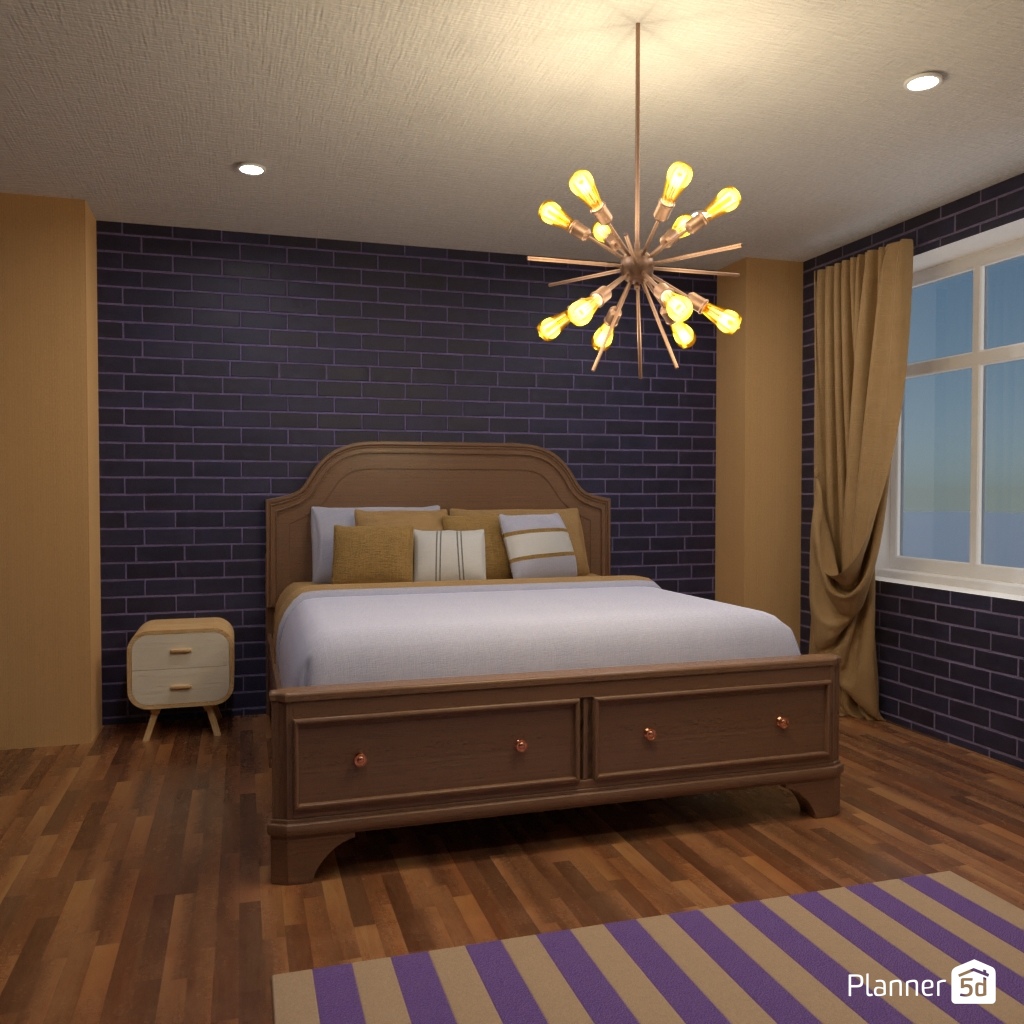 Pick two contrasting colors and use them to design the interior of a bedroom.