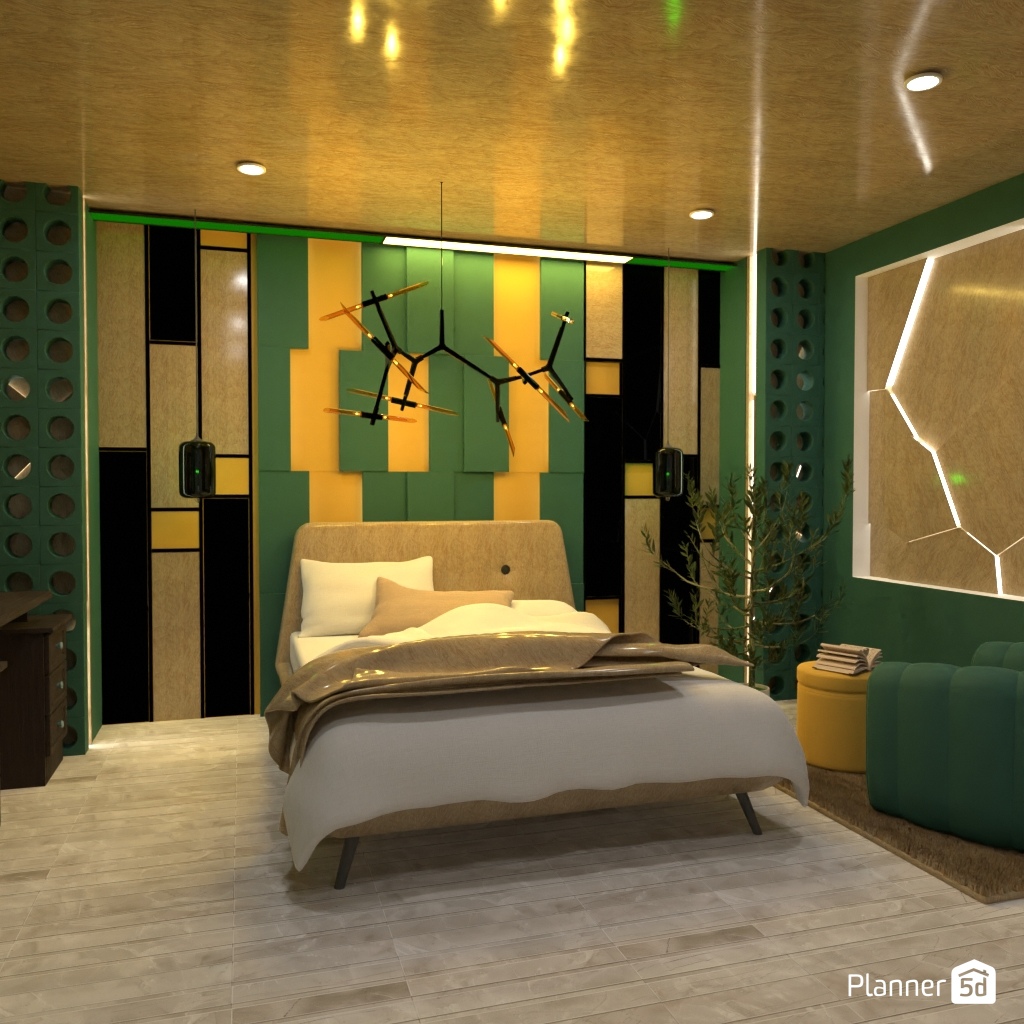 Pick two contrasting colors and use them to design the interior of a bedroom.