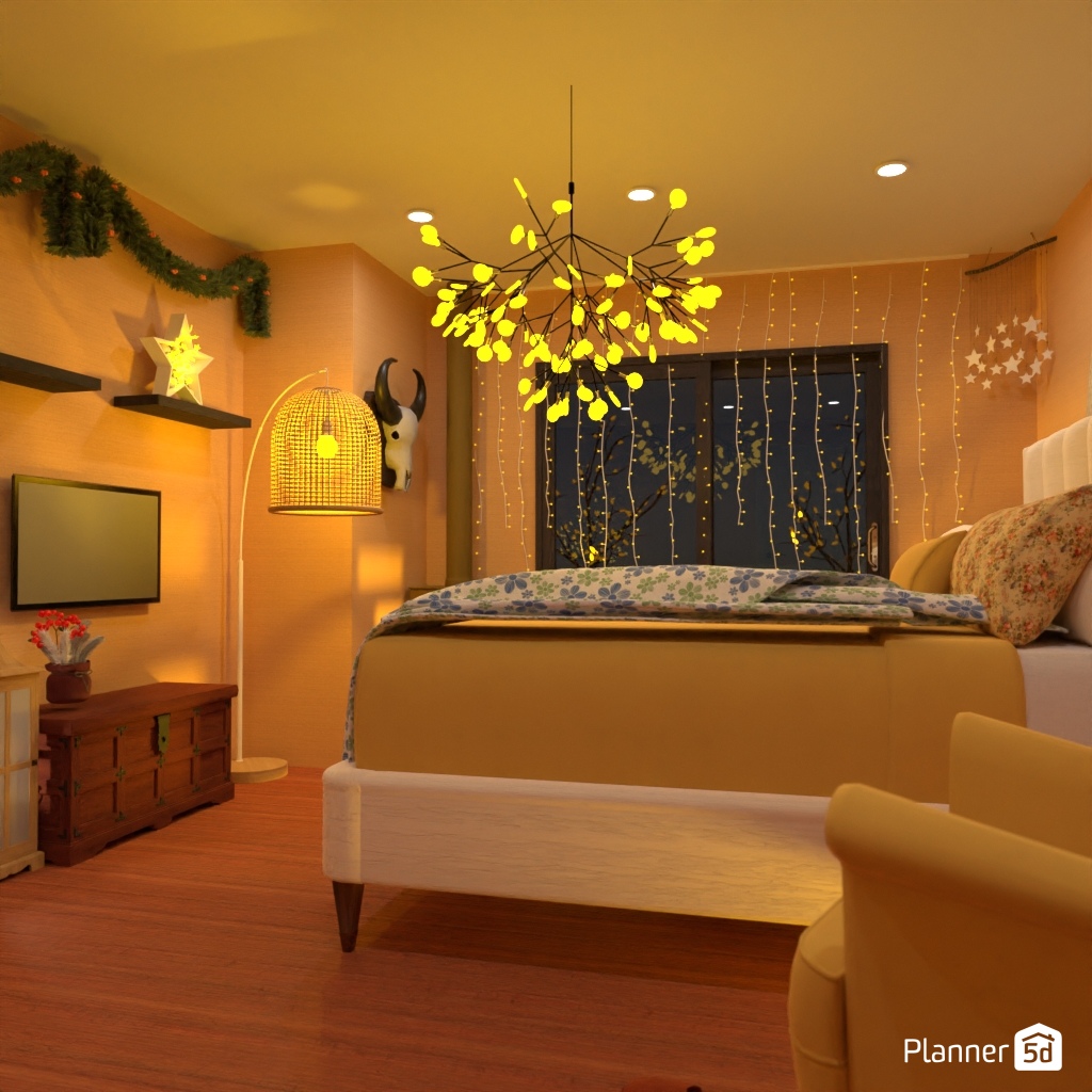 Create a bedroom interior that is associated with winter.
