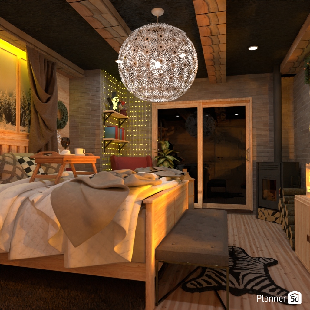 Create a bedroom interior that is associated with winter.