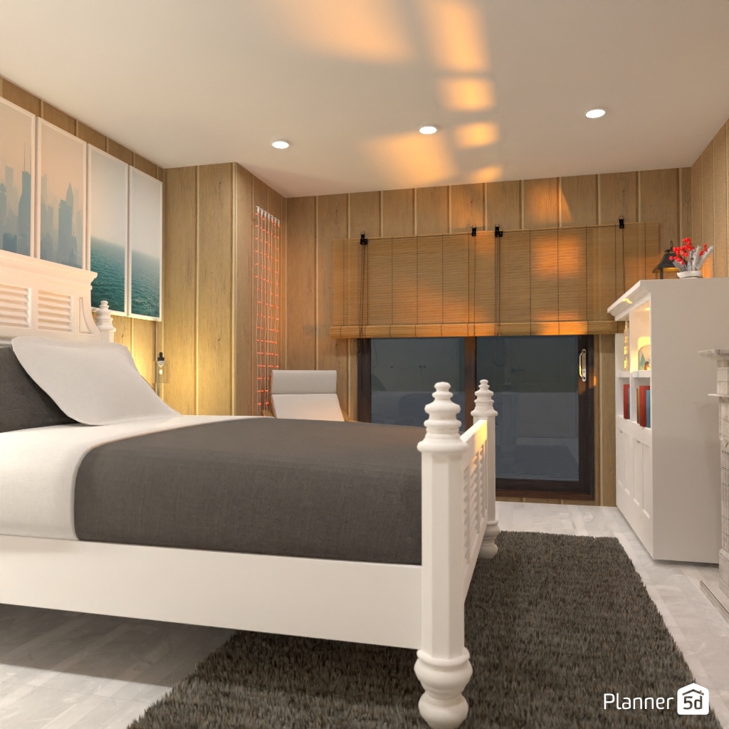 Create a bedroom interior that is associated with winter.