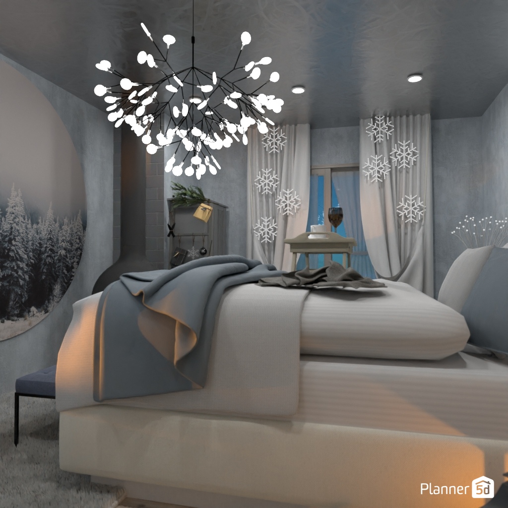 Create a bedroom interior that is associated with winter.