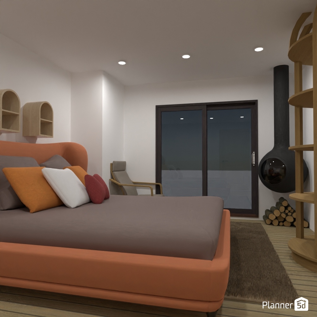 Create a bedroom interior that is associated with winter.