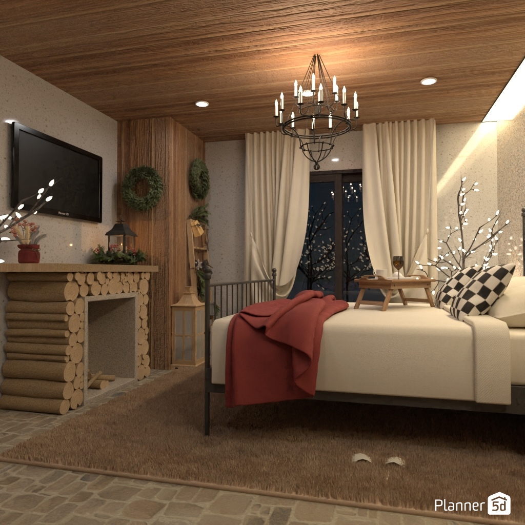 Create a bedroom interior that is associated with winter.